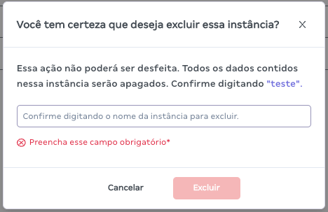 - Para excluir uma instância, acesse a listagem de instâncias e no menu da instância que deseja remover clique em “Excluir”.