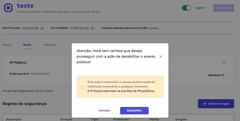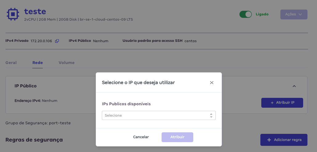 - Atribuir ou remover o IP Público