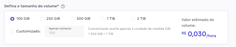 - Defina o tamanho do volume.