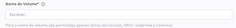 - Defina o nome do volume, considerando apenas letras minúsculas, hífen, underline e números.