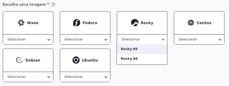 - Selecione o sistema operacional (imagem) e a versão que deseja;